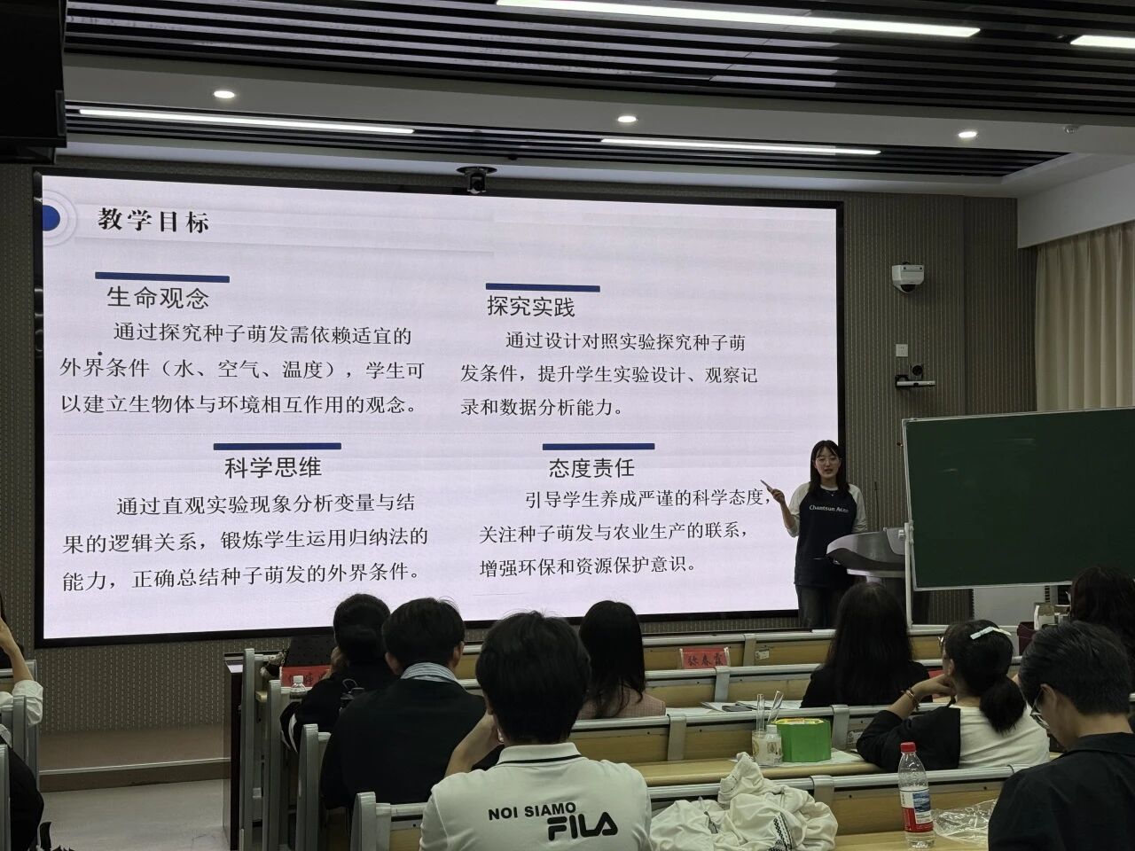 为促进师范生教师素养提升,提高师范生人才培养质量,检验师范教育教学水平,2025年9月24日,生命科学与技术学院在实训楼710组织开展2022级师范生教学技能竞赛。本次竞赛由副院长弥春霞、学科带头人张晓军、生物科学系主任姜明、教师刘秋月和何婷婷担任评委,2022级生物科学专业15名师范生参加了本次竞赛,2023级生物科学专业学生观摩了本次竞赛。