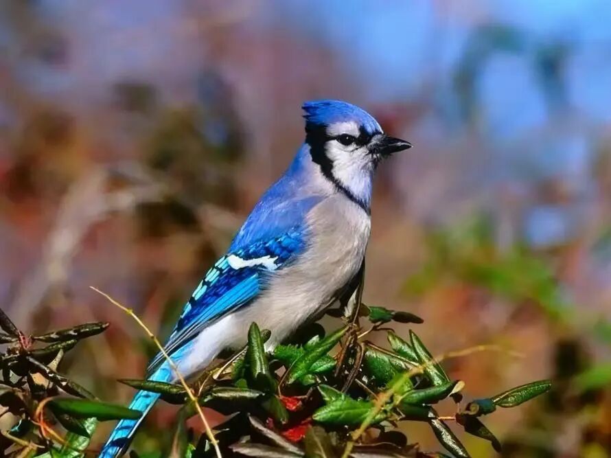 冠蓝鸦又名蓝松鸦,是雀形目鸦科冠蓝鸦属鸟类,其雄性和雌性在外形上相似,雄鸟体长略大一点;面部呈白色,有蓝色的脊背、翅膀和尾巴,其中点缀着黑色和白色,喉咙处也有一圈黑色羽毛,围绕在头部周围;爪子、腿和眼睛都是黑色的。其以深蓝色的羽毛和翅膀上黑白分明的条纹而得名。蓝松鸦的智商在鸟类中处于较高水平,相当于哺乳动物中的一些灵长类,是典型的“聪明鸟”。