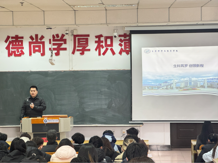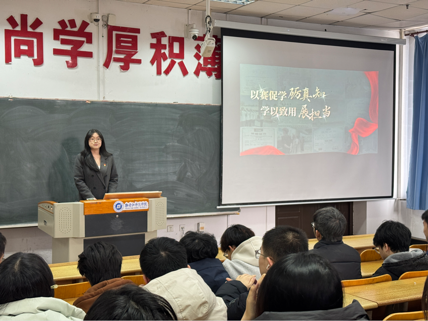 会议伊始,彭赫老师围绕大学生创新创业核心赛事展开介绍,重点讲解智慧农机相关竞赛、全国大学生生命科学竞赛、大学生职业规划大赛等重点赛事的参赛要求、备赛方向与价值意义,帮助同学们搭建起清晰的赛事认知框架,明确备赛方向与成长目标。
