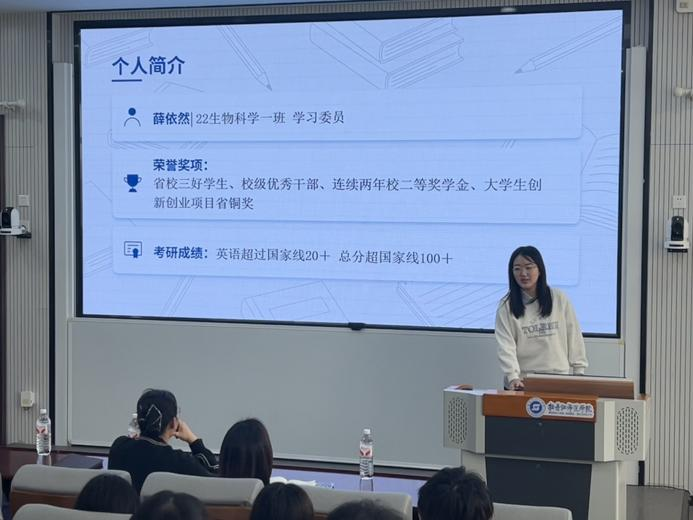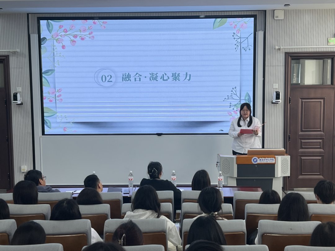 随后,三位转专业的同学依次上台,分享了自己转入新专业后的学习经历和未来规划,真诚地讲述了适应新环境、重新出发的决心与期待,让“凝心聚力”不再只是一句口号,而是落在实处的接纳与陪伴。大家因共同的目标走到一起,在互相帮助中慢慢适应、共同成长,在彼此陪伴中稳步前行,一点点凝聚成一个温暖又有凝聚力的班集体。