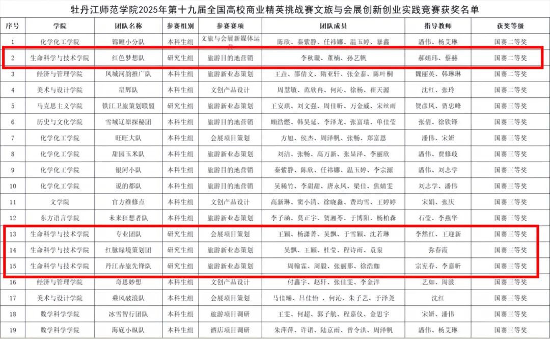 近日,2025年全国高校商业精英挑战赛文旅与会展创新创业实践竞赛全国总决赛圆满落下帷幕。经过激烈的角逐,我院研究生组凭借出色的表现荣获国家级二等奖一项,三等奖三项。
