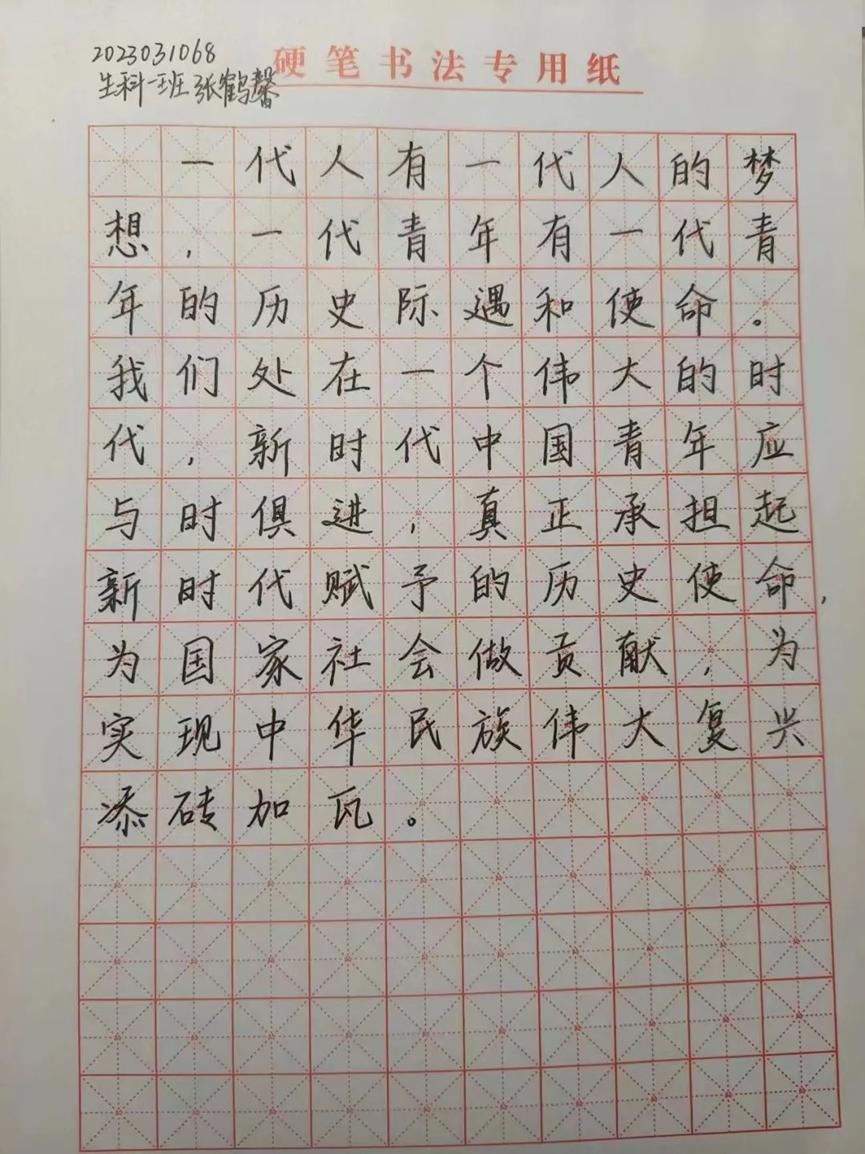 提笔生根,落笔成花。本次比赛激发了学生写字练字的兴趣,提高学生规范使用语言文字的能力。笔墨飞扬间,我们聆听圣人的故事,体悟先贤的智慧。接下来,学院将继续培养学生专业本领,关注生科学子的精神素质培养,激励生科学子以笔为刃,以梦为马,书剑茫茫,不负青春!