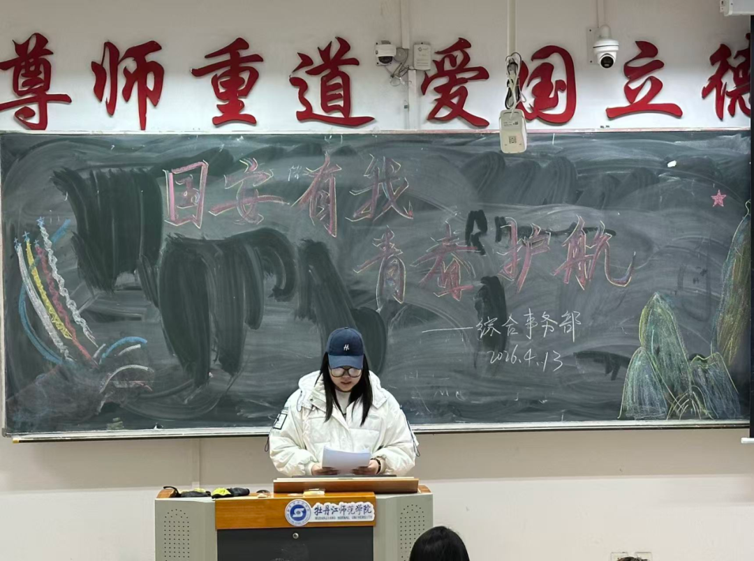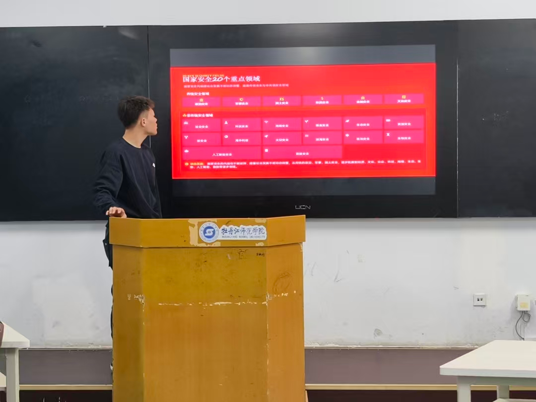 班会伊始,主持人索子涵围绕全民国家安全教育日背景,阐明本次主题教育的目的与意义,深入解读总体国家安全观,系统宣传《中华人民共和国国家安全法》等重要内容,引导同学们充分认识国家安全的丰富内涵与极端重要性。