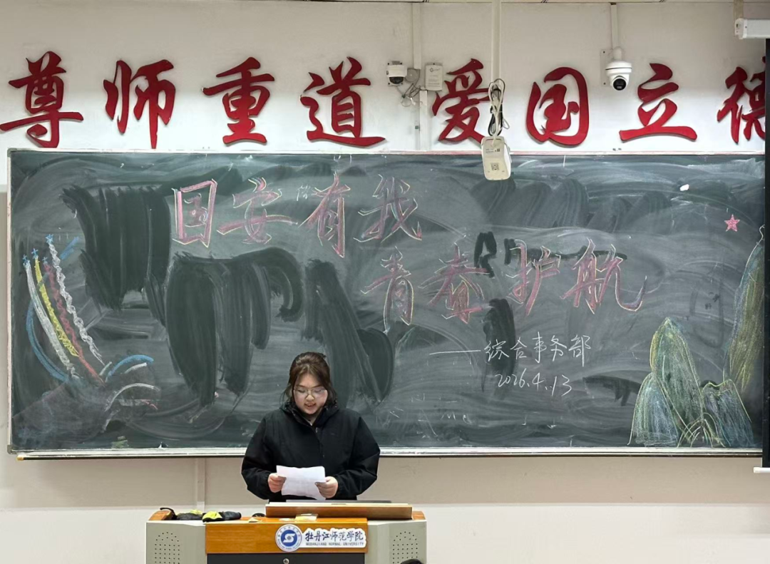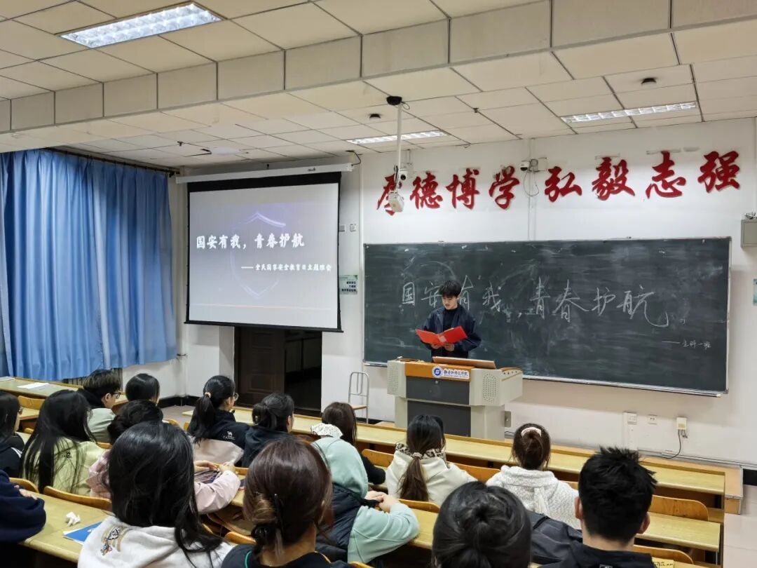 为深入贯彻总体国家安全观,切实做好全民国家安全教育日宣传教育工作,落实“一月一主题”工作要求,引导青年学子牢固树立“国家安全,人人有责”的理念,强化国家安全意识、责任意识与防范意识,筑牢校园国家安全防线,2026年4月13日,生命科学与技术学院在综合楼601室开展“国安有我 青春护航”——国家安全教育主题班会。2025级园林专业全体同学参加本次班会,由综合事务部干事索子涵主持。