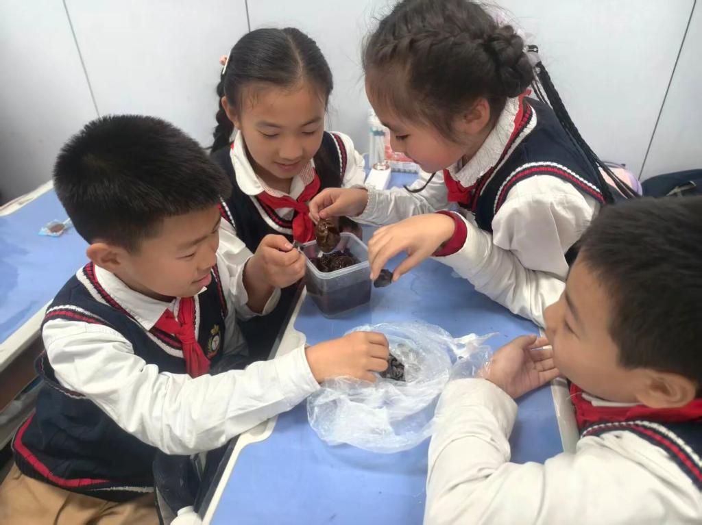 到了动手实践环节,同学们在志愿者的指导下,一边仔细听讲解,一边亲手体验照料真菌。大家小心翼翼地喷水、遮盖养护,认真观察变化并做好记录,一步步探寻微观世界的小秘密。在看、听、做的过程中,孩子们真切感受到了真菌世界带来的独特乐趣与魅力。